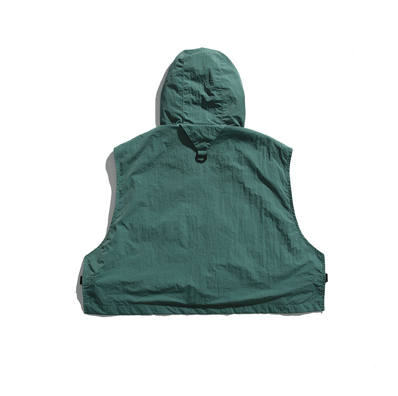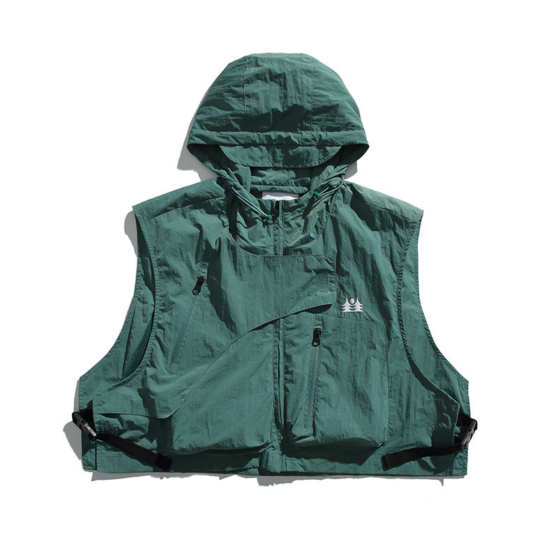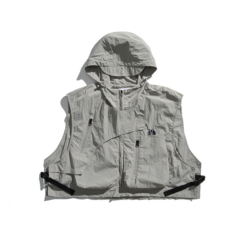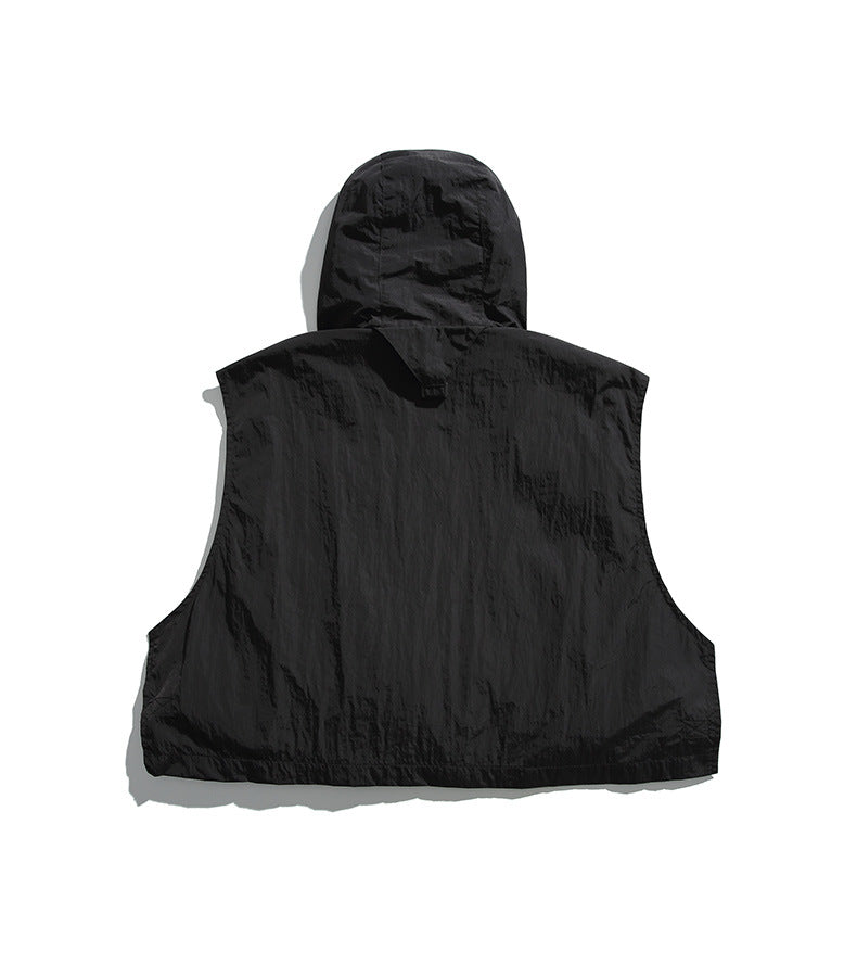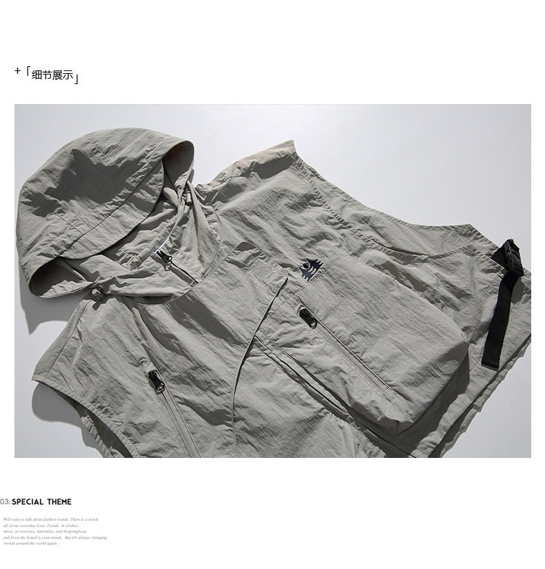 College Style Loose Hooded Windproof Fishing Vest Jacket