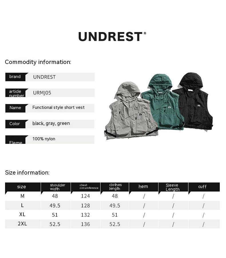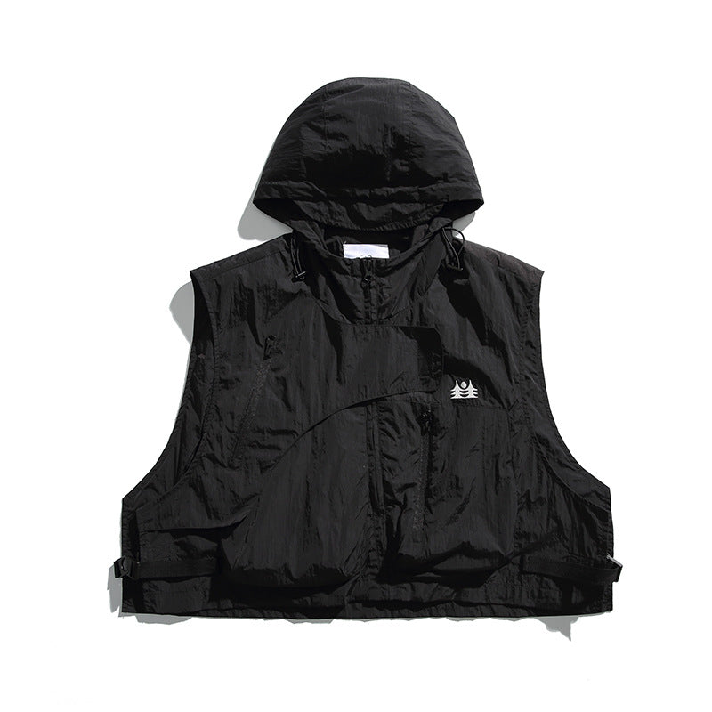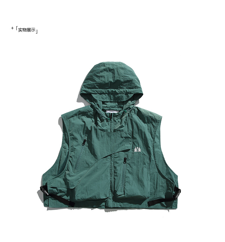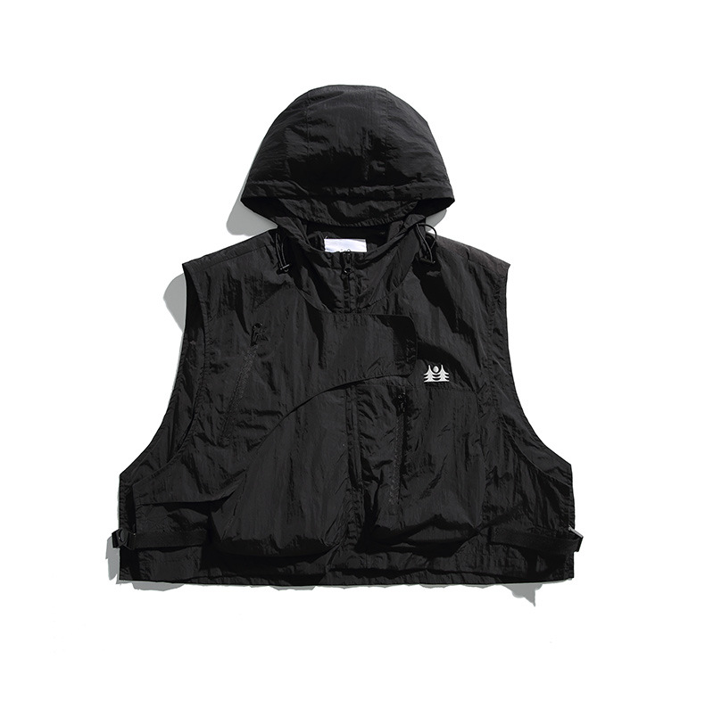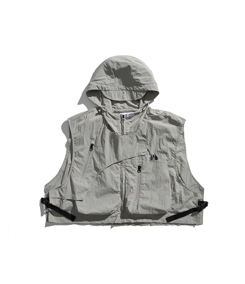 College Style Loose Hooded Windproof Fishing Vest Jacket