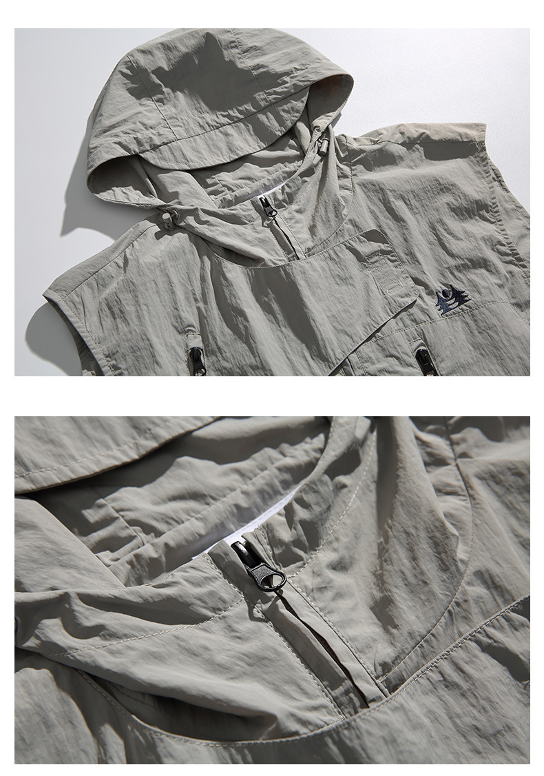 • College Style Loose Hooded Windproof Fishing Vest Jacket